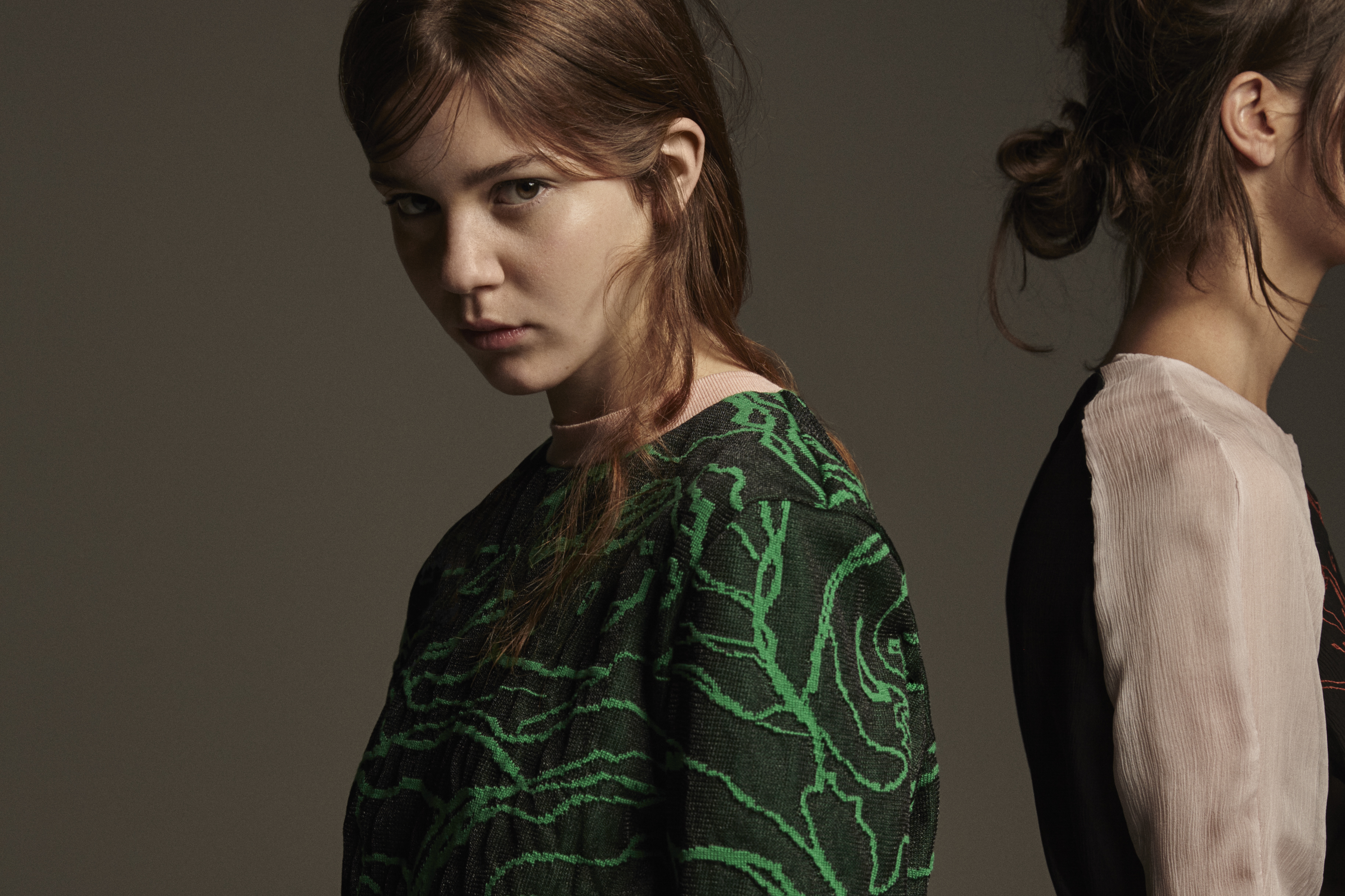 the technique and use of colour, which are brought out in her floral still life paintings. The heavy theme, expressed in her paintings, overwhelmed me, but at the same time made me feel happy. The brightly coloured and delightful flowers in the center are simply a distraction for the withered flowers on the side. In my collection I play with these contrasts. My collection tells a story that evokes both joy and sadness. A feeling that I visualize through the black and white in contrast with bright green, pink, red and orange in refined and feminine silhouettes. My love for prints and handcrafts is portrayed in floral designs that are melted together with knitting and embroidery. By using an interaction between silhouette, colour and print, I create my own floral still life.